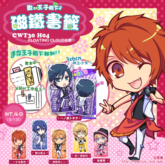 ![]() 這次CWT30兩日都在3樓的H04,於FLOATING CLOUD寄賣 ![]() 星嵐販售的商品如下,購買刊物會贈送書卡,送完為止 ![]() 攤主FUFU主要販售的是鋼彈00的商品 ![]() 歡迎大家來玩~ ![]() 新刊 2012/01/28發行 《Baby Baby Baby》(上) B5/ 24p/ NT.120 時音本,兩人交往後,音也遇到HAYATO發生的事... sample再版 2011/10/29發行 《我的室友是王子殿下》 B5/ 36p/ NT.160 時音+蓮真本,面對絕對戀愛禁止令仍不可自拔的相戀的笨蛋情侶們...(R15注意) sample![]() 這次因為自己很想要努力做出的小東西~ 以平面公仔為概念的歌王子磁鐵書籤 ![]() 總共是ST☆RISH的六人,一個40元。 |